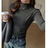 autumn winter half high collar solid color slim bottomed tee women long sleeve all-match pullover t-shirt top