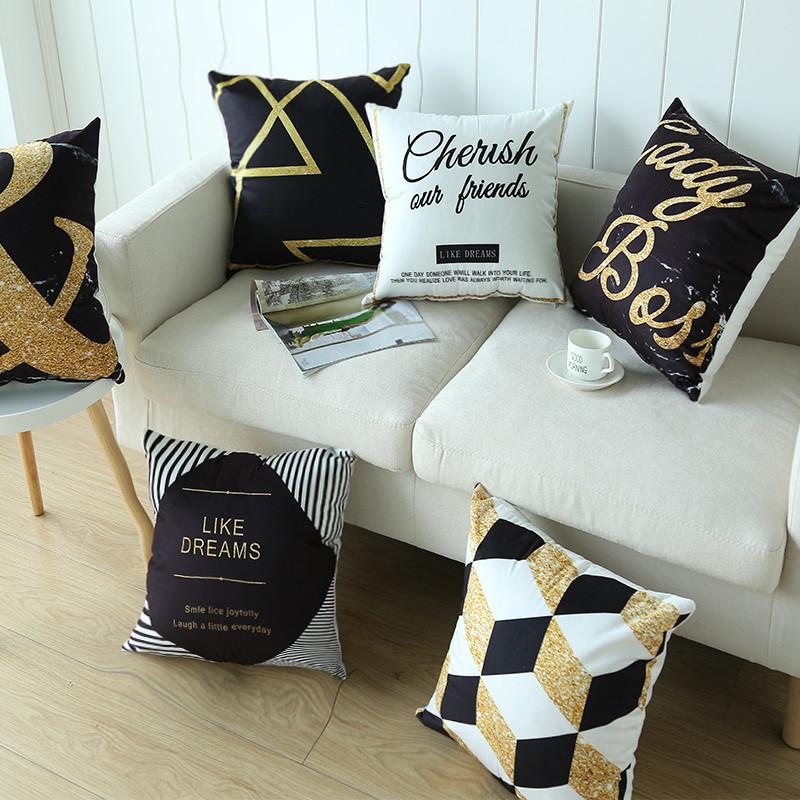 Nordic Marble Ins Style Black Gold Pillowcase Short Plush Hot Stamping Car Sofa Pillowcase Without Pillow Core