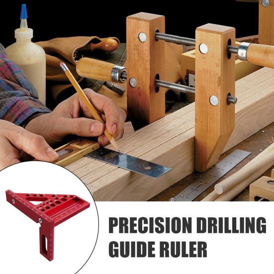 1/2Pcs 3D Aluminum Alloy Triangle Ruler with Drill Guide Holes Protractor Ruler 45/90 Multi Angle Woodworking Carpenter Measuring Ruler