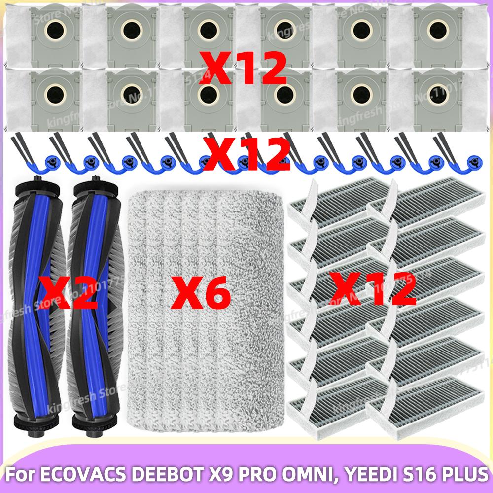 Compatible For ( ECOVACS X9 PRO OMNI, YEEDI S16 PLUS ) Vacuum Parts Main Brush Filter Roller Mop Cloth Dust Bag Accessories