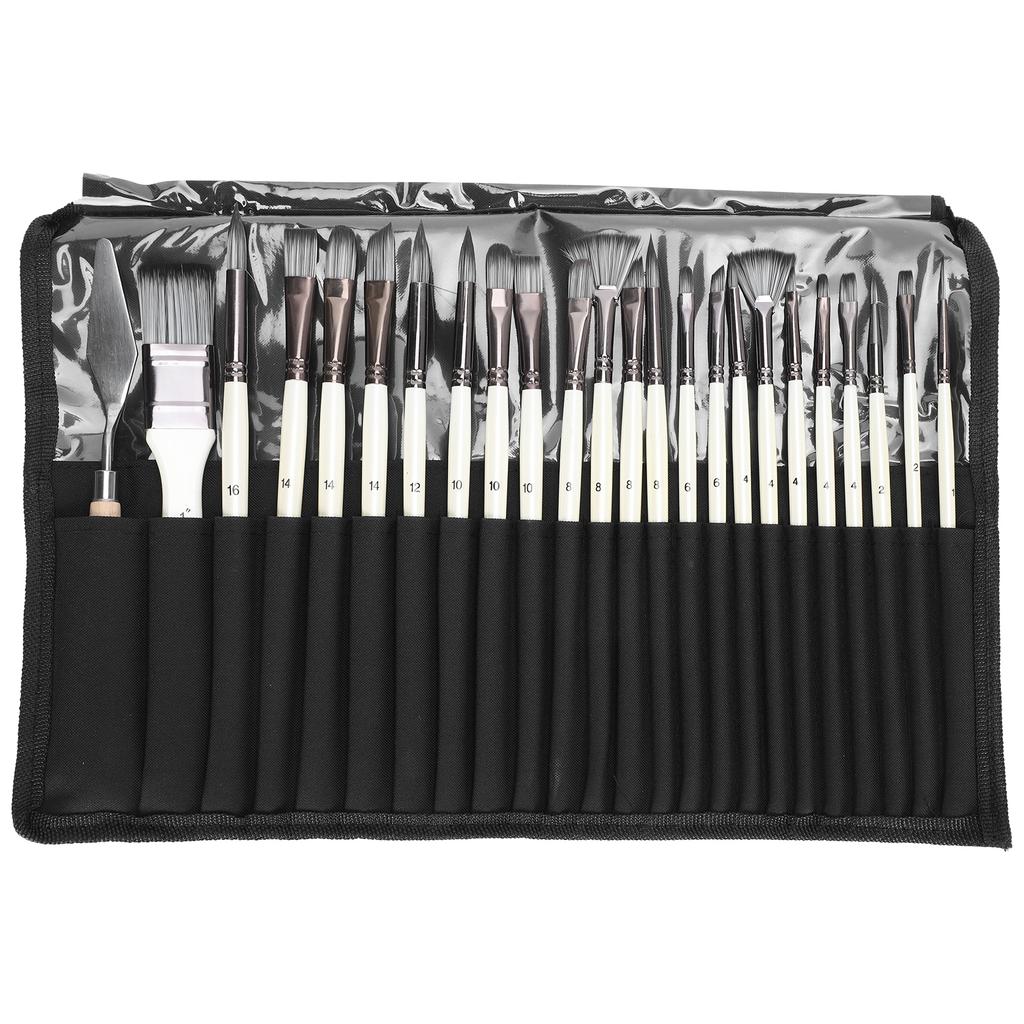 24Pcs Painting Brush Set Nylon Wool Wooden Handle with Bag for Acrylic Watercolor Paint