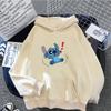 Boys Girls Disney Stitch Angel Cartoon Fun Print Fall and Winter Long Sleeve Top Kids Casual Comfortable Soft Hooded Sweatshirt