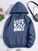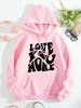 Love You More Creative Art Letter Printing Women Hoodie Fleece Pocket Hoody Casual Multicolor Pullover All-Match Soft Streetwear