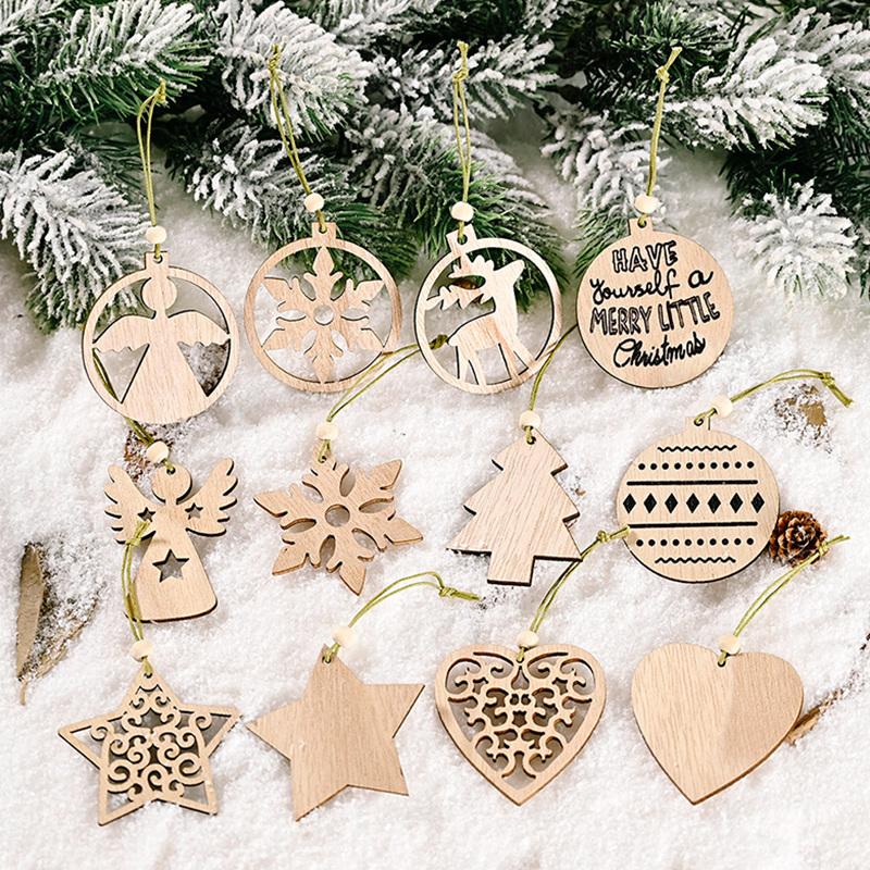 12 buc/cutie Pandantive din lemn de Crăciun Ornamente de agățat pentru pomul de Crăciun Artizanat din lemn DIY Pentru casă Petrecere de Crăciun Decorațiuni de Anul Nou