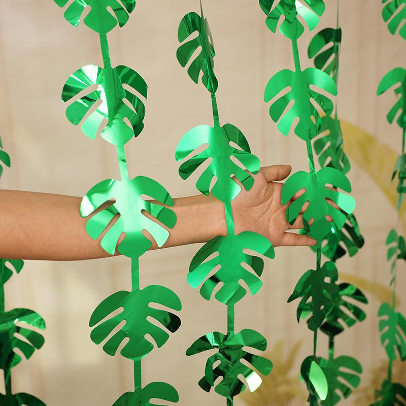 1X2M Green Tropical Palm Leaves Tinsel Foil Fringe Curtains Hawaiian Party Photo Backdrop Kids Jungle Birthday Party Decorations