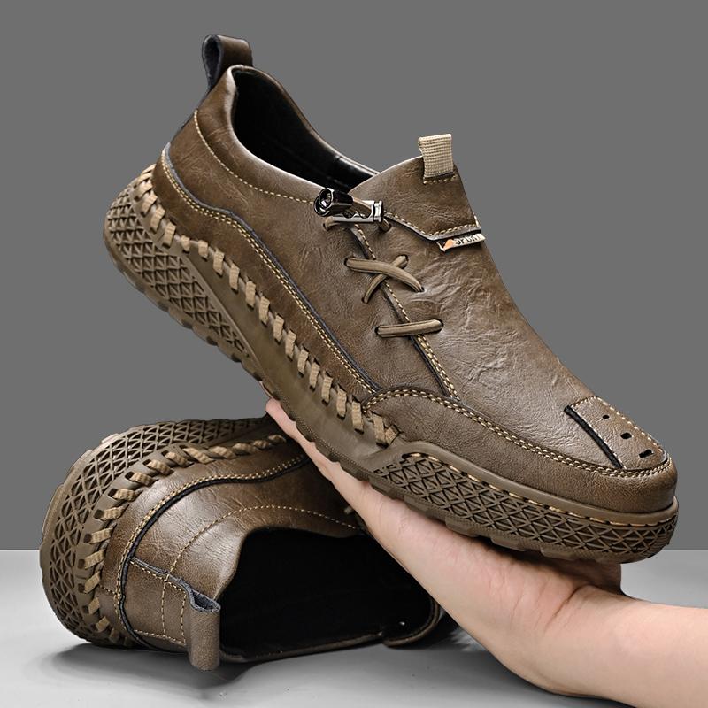 Hand-stitching Mens Sneakers Vintage Style Leather Loafers Shoes Man Comfortable Slip on Shoes Non-Slip Travel Climbing Footwear