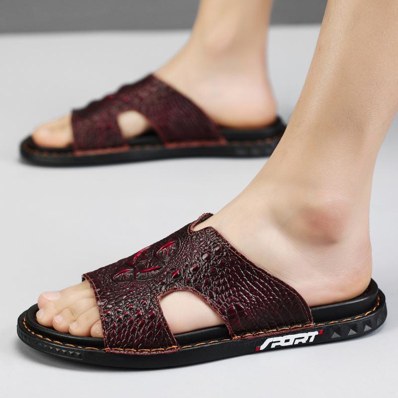 Leather Men's Slippers Luxury Crocodile Slip On Casual Shoes High Quality New Non-Slip Summer Sandals For Men Slippers