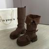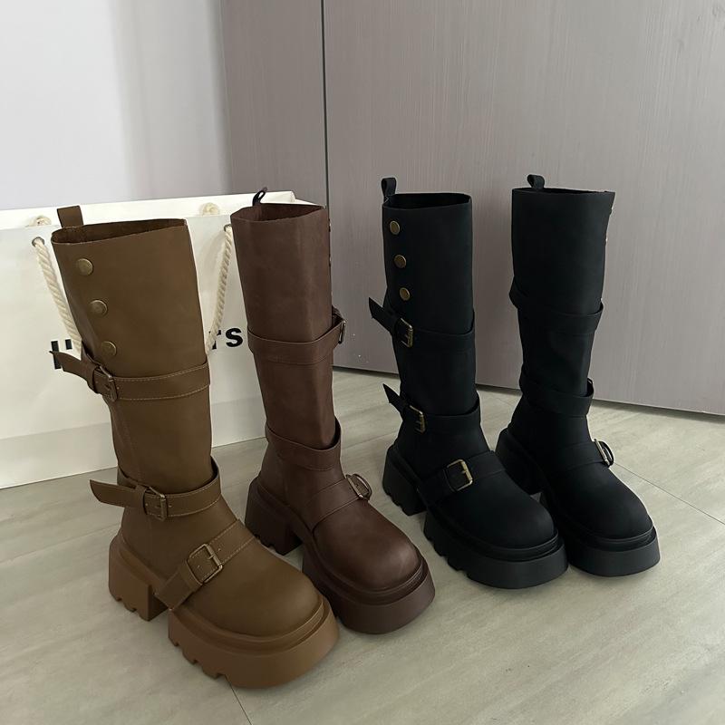 [Fanfuna] Retro belt buckle boots for women's 2025 autumn new thick-soled high-looking and thin soft-soled knight boots