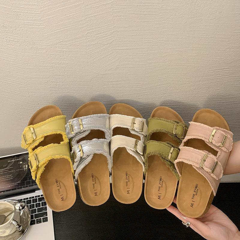 Fashion flat-bottomed slippers women's outer wear 2025 summer new versatile belt buckle casual beach one-word cool slippers