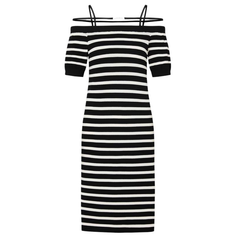 MO&Co. Off-Shoulder Striped A-Line Dress