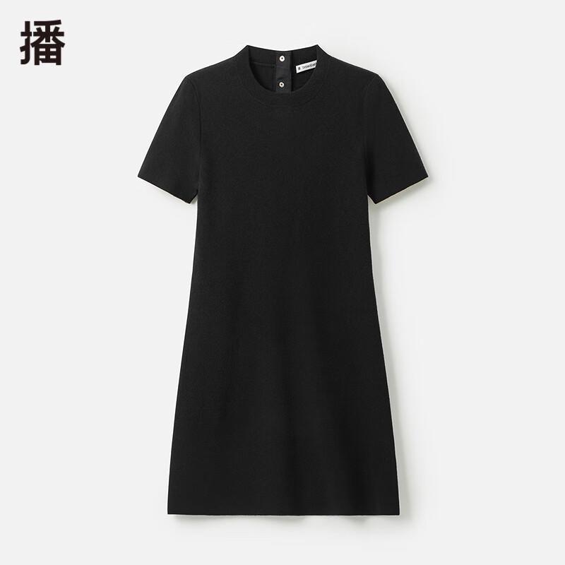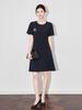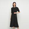 Broadcast Women's Black Round Neck Short Sleeve A-Line Midi Dress