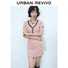 UR 2025 Autumn Striped Slit Cotton Dress