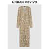 UR 2025 Spring Printed Smocked Long Sleeve Dress