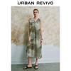 UR Women's 2024 Autumn Color-Block Printed Draped Shirt Dress