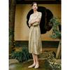 Qiu Shui Yi Ren V-Neck Waist-Cinching Printed Dress