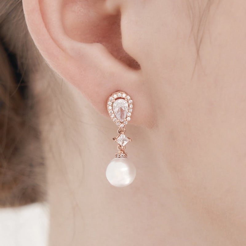 Cercei lungi cu perle fine în formă de picătură de apă, aur 14K, ELLE Jewelry ELGPEE556