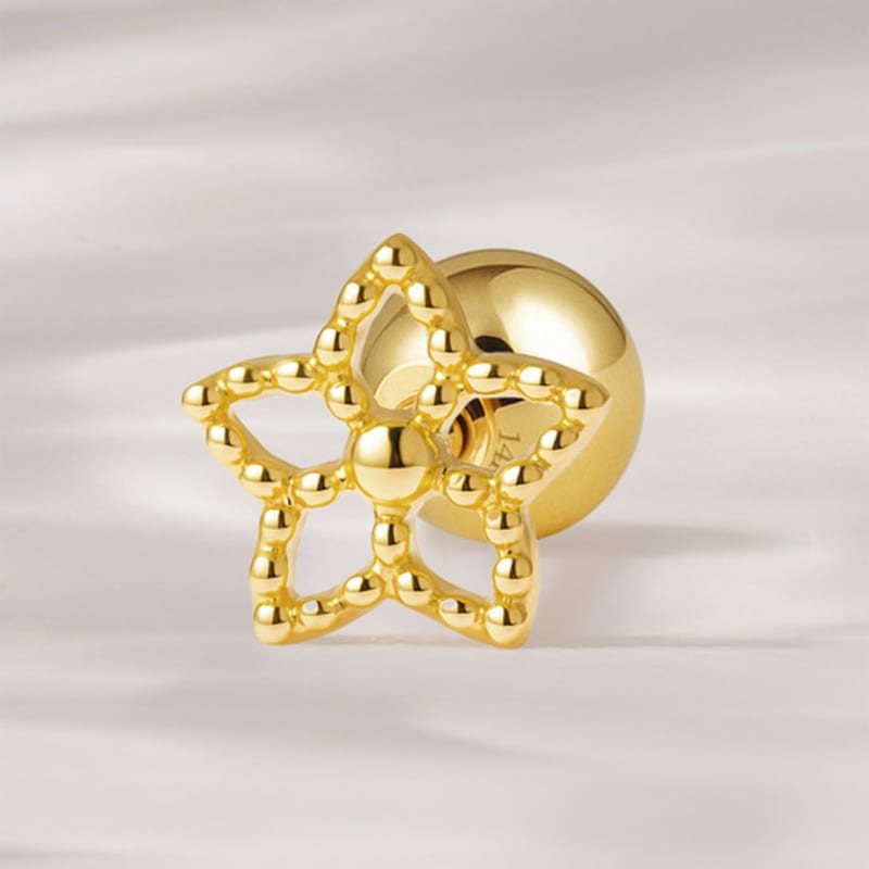 JEWNEL 14K Ultra Mini Ball Line Flower Piercing Earrings