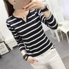 Autumn Korean Womens Slim Stripe V Neck Long Sleeve Tee Base Layer Dropshipping