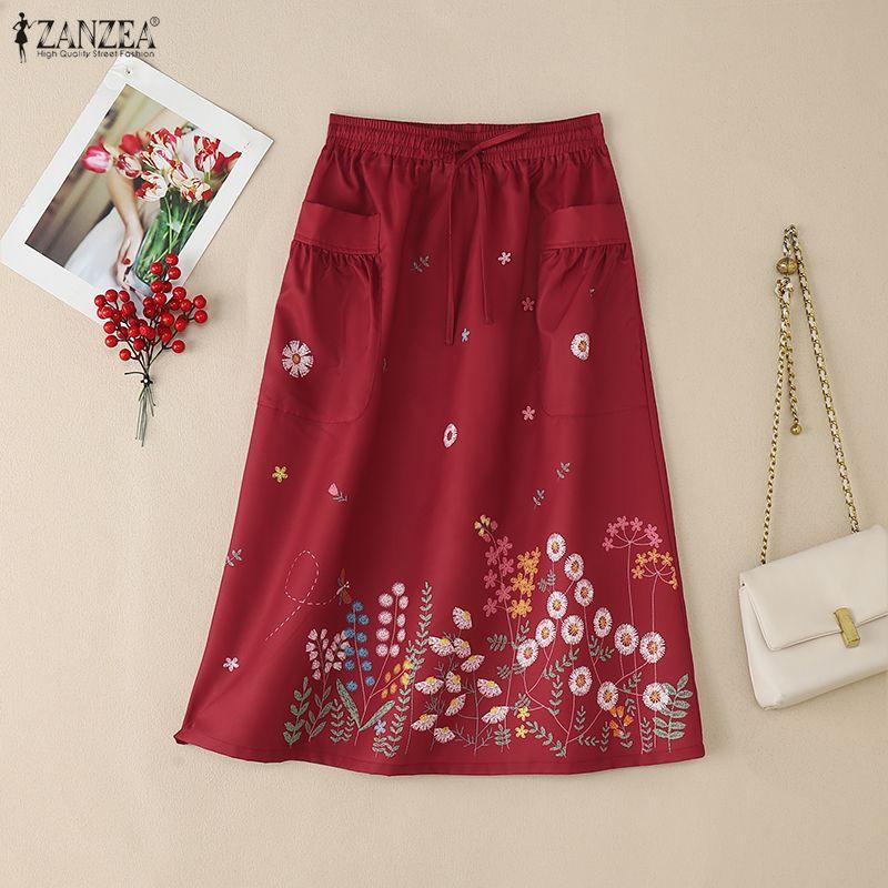 ZANZEA Women Summer Elastic Waist Loose Casual Floral Print Skirts