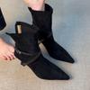 High Heel Back Zipper Women's Scrub Belt Buckle Pointed Toe Temperament Booties Vintage Slim Follower Single Boots