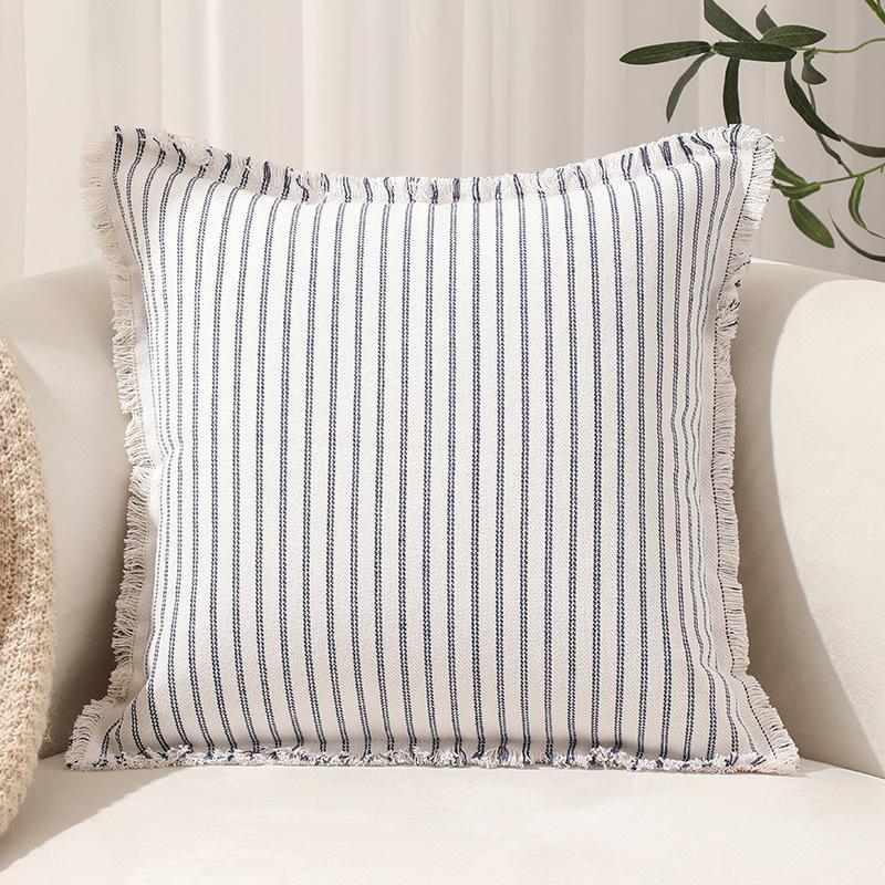 New Polycotton Striped Edge Pillowcase Geometric Striped Pillowcase Without Core Multiple Sizes
