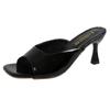 Sandale cu Toc Înalt din Piele Patentată Femei 2025 Vară Noi Stil Britanic Toc Subțire de Purtat Afară Papuci Femei Mărime Mare