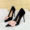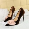 Spring Autumn New Banquet Wedding High Heels Shoes Suede Fine Heels Shallow Mouth Pointed Flower Decorative Women's Single Shoes