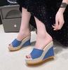 FHC 10cm High Heels Wedges Slippers,Beach Summer Shoes,Platform Slides,Flip-Flops,Slip On,Big Size 34-42,Black,Blue,Dropship