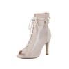 FHC 9.5CM Women High Heeled Sandals Boots,Summer Ankle Botas,Hollow Out Mesh Shoes,Peep Toe,Black,Apricot,Front Laces.Dropship