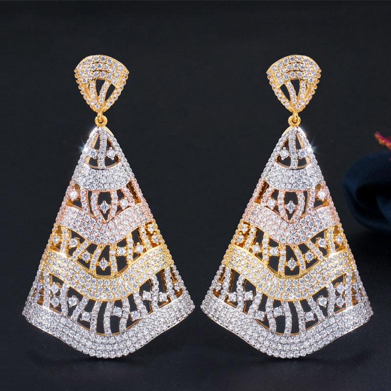 E0309 Earrings Africa Middle East Exaggerated Atmosphere Electroplated 18K Gold Three-Color Earrings, Needle