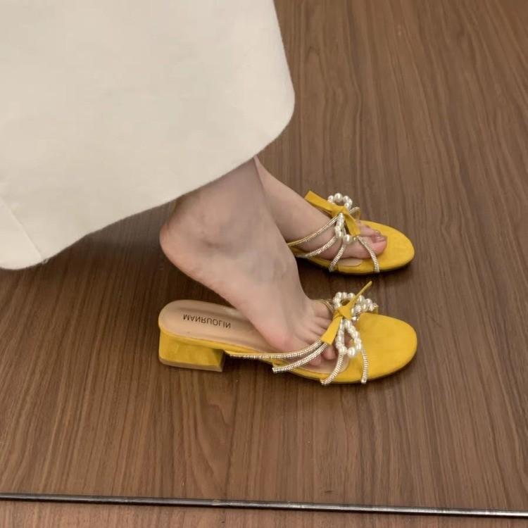 French stunning high heels thick heel cool slippers women's summer wear 2025 new with skirt fairy style square heel sandals