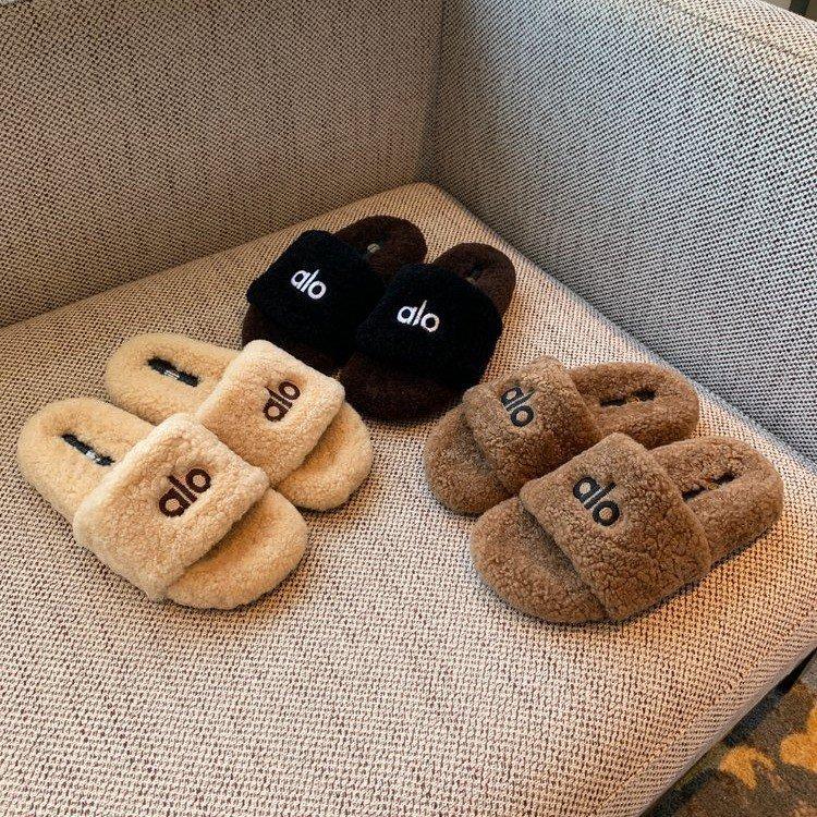 Korean version of thick-soled lamb wool slippers women's outer wear 2025 new autumn and winter versatile fashion one-word plush drag
