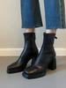 Black high-heeled rear zipper short boots women's autumn and winter new short tube square head thick heel Martin boots waterproof table thin boots