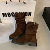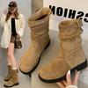 Medium tube short boots women's 2025 autumn and winter new versatile retro knight stacking boots flat-bottomed sleeve suede Martin boots