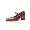 Red thick heel versatile single shoes women's 2025 autumn new square head French temperament Mary Jane is not tired of high heels