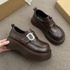 Loafers women's 2025 spring new retro brown Velcro single shoes platform heightening British style small leather shoes