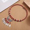 1PC Ethnic Multicolor Long Chain Boho Stone Beads Jewelry Accessories Leaf Red Stone Alloy Carving Gaskets Tassel Necklace