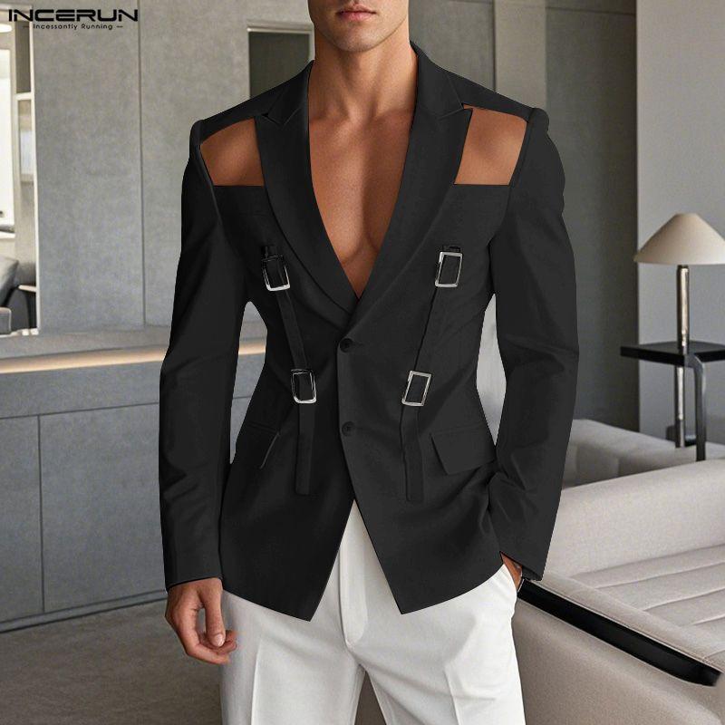 INCERUN Paltoane Blazer Subțiri cu Rever pentru Bărbați, Mânecă Lungă, Decupaje cu Nasturi