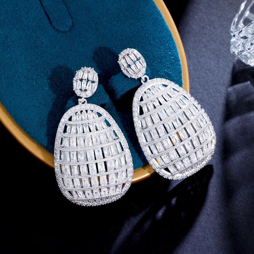 Heavy Industry Super Flash Hollow Earrings, Gas Full Of Zircon Three-Dimensional Geometric Copper Gold-Plated Earrings, Earrings.