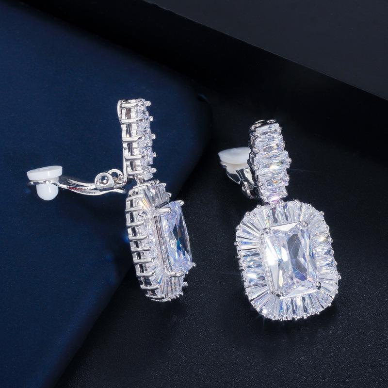 Ej0109 Earrings, Super Flash Square Zircon Earclips, Women'S High-End Dinner Accessories