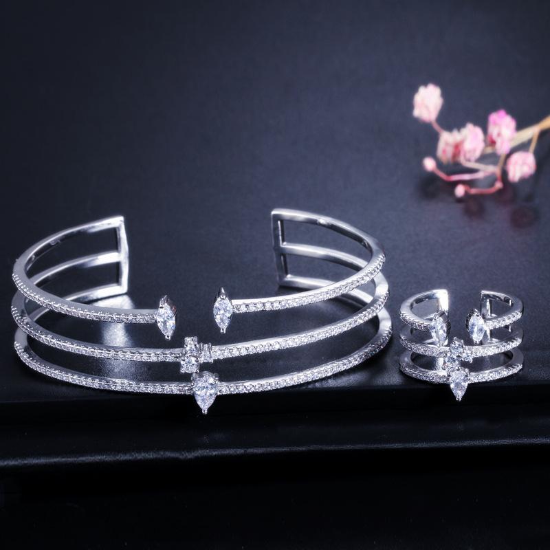 Ki0094 Three-Row Micro-Inlaid Zir*****Pen Bracelet Ring, Environmentally Friendly Copper Electroplated 18K Gold