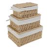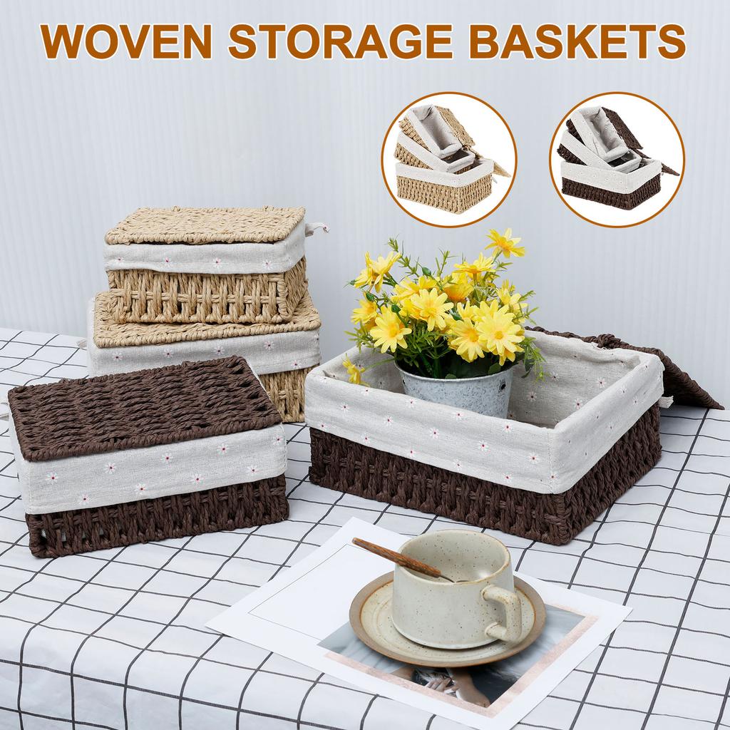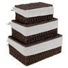 3Pcs Cotton Linen Woven Storage Basket Handwoven with Lid Cosmetic Towel Container Storage Box Household Baskets