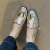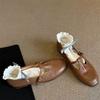 Guttega~ Soft leather flat bottom round head retro Mary Jane shoes women's one-pedal single shoes British small leather shoes loafers
