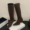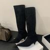 Eilyken Cizme de iarnă pentru femei, cu vârf ascuțit, până la genunchi, pantofi la modă cu toc jos subțire, botine pliate de designer