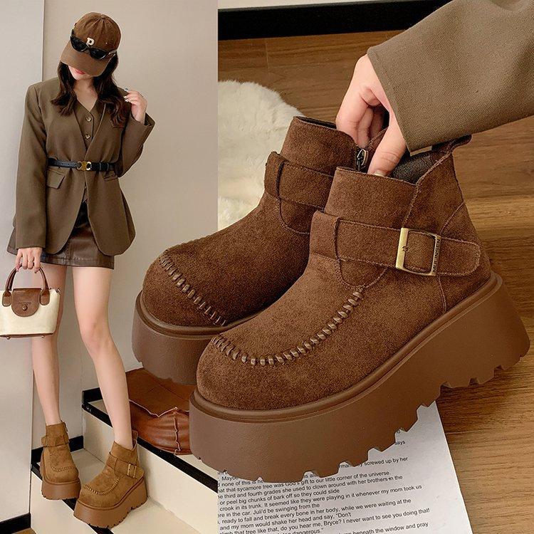 Martin boots muffin platform women's short boots 2025 autumn and winter velvet versatile lazy one pedal and bare boots snow cotton boots