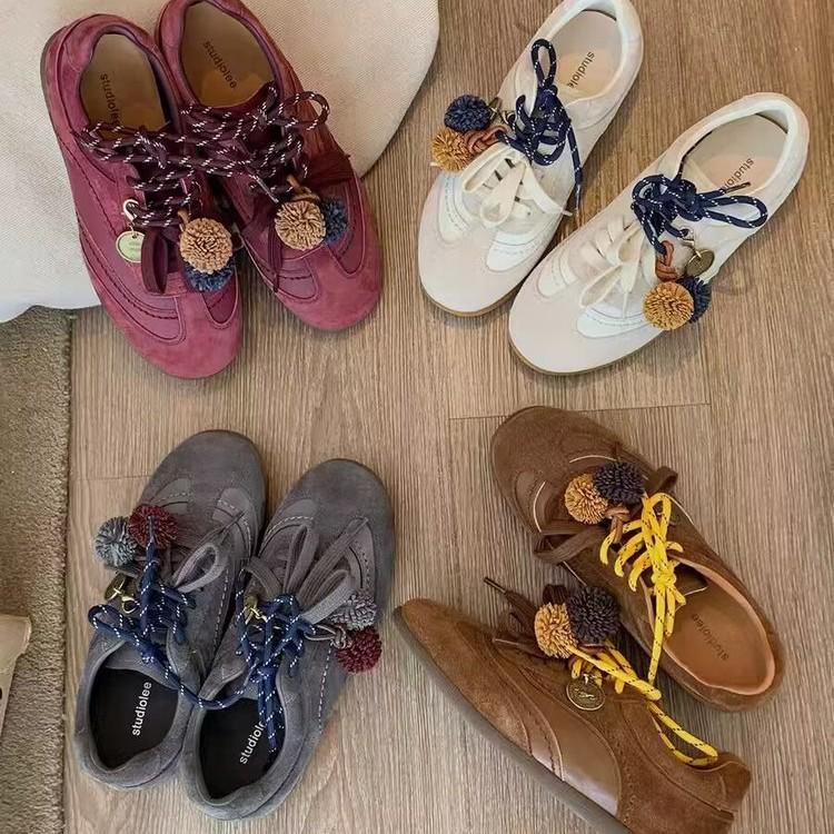 Cowhide version~ Super fire leather contrasting shoelaces German training shoes women's autumn new inner height increase casual shoes sports Forr