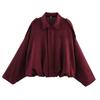 Jachetă Bomber de Damă cu Efect de Textură Suedeză, Versiune Largă, cu Rever la Modă pe Umeri