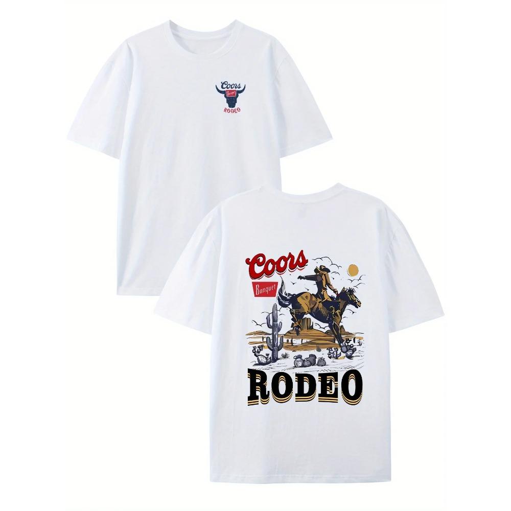 [Tricou Cowboy Casual] Tricou Casual de Vară cu Imprimeu Cowboy - Tricouri cu Mânecă Scurtă pentru Bărbați