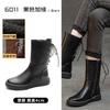 Versatile retro autumn and winter leather Martin boots women's brown thick heel platform knight boots velvet warm women's boots