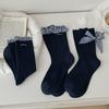 Spring and Autumn Lace Checkered Socks for Women, Mid-calf Pile Socks, Fashionable and Trendy Socks
